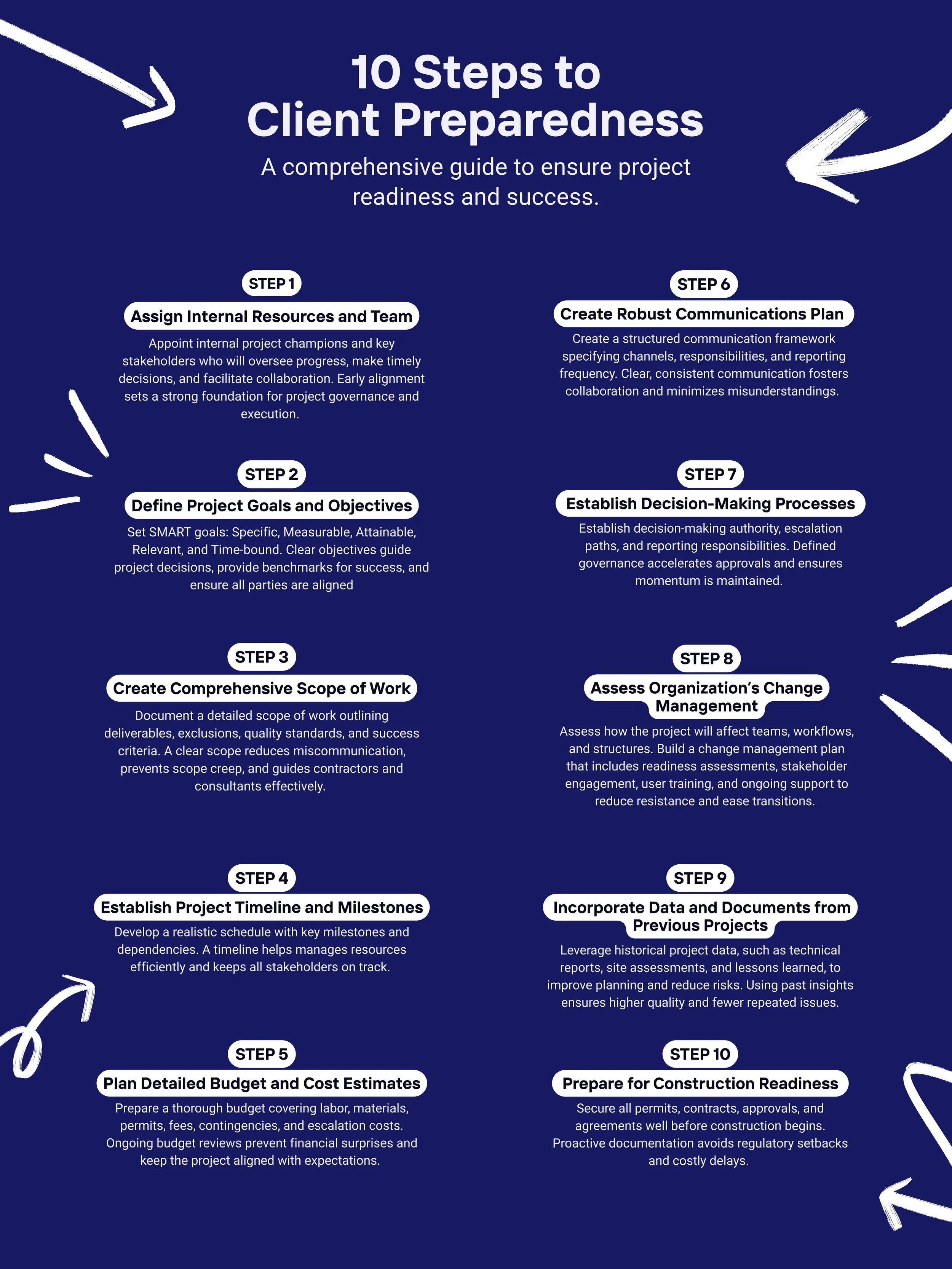 Appoint internal project champions and key stakeholders who will oversee progress, make timely decisions, and facilitate collaboration. Early alignment sets a strong foundation for project governance and execution.